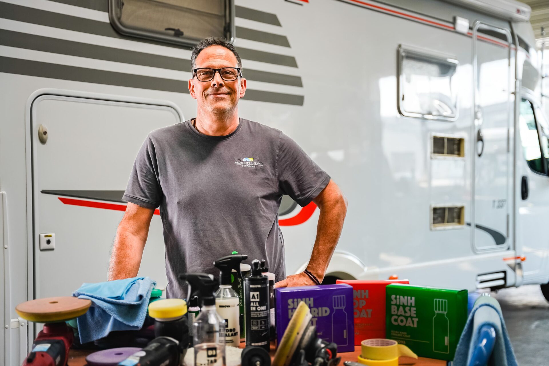 Mir gefällt das neue Konzept ausgesprochen gut, weil wir viele neue Bereiche und Services in das Erwin Hymer Center integrieren konnten. Die gesamte Werkstatt mit Reparaturen, Reifenservice und Instandsetzungen ist ein großer Schritt nach vorn. Besonders freue ich mich über meinen eigenen Bereich – die Aufbereitung und Keramikversiegelung. Dieses Angebot wird, denke ich, bei unseren Kunden sehr gut ankommen, denn in dieser Form und Größe gibt es das bislang kaum.